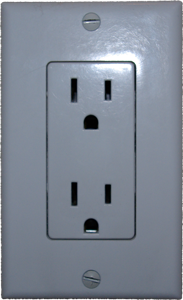 Let’s start at the wall. We see here a NEMA 5-15 Type B 3-Pin duplex socket. As you may notice, the left slot is slightly taller than the right one. This is the neutral. The live line is on the right, and the ground is on the bottom.